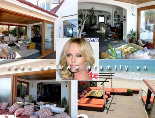 Nữ diễn viên tóc vàng Charlize Theron đã quyết định cho thuê căn hộ ở Malibu, gồm 3 phòng ngủ, 2,5 phòng tắm với giá 50.000 USD/tháng. Được biết trước đây cô từng sống ở căn nhà theo phong cách đồng quê rộng hơn 600m2 này với anh bạn trai cũ Stuart Townsend.