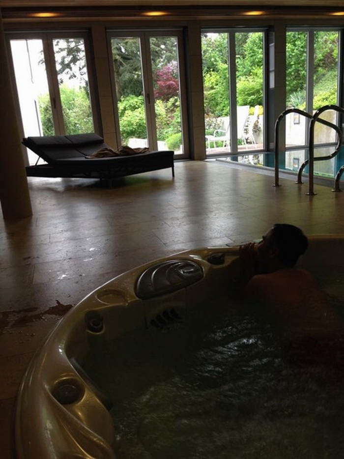 Bể bơi và bể sục trong nhà đủ để thấy được diện tích của ngôi nhà lớn đến cỡ nào.