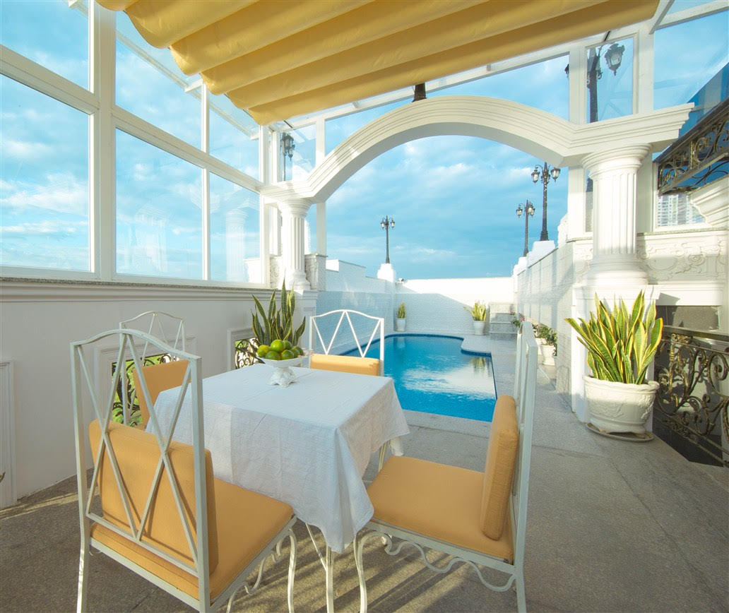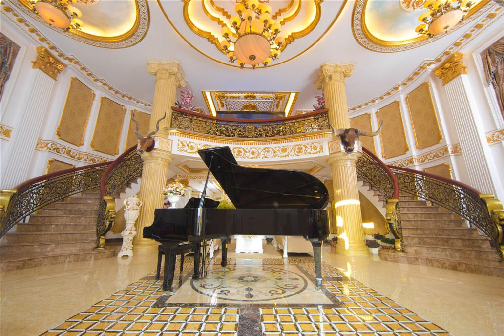 Toàn bộ toà nhà rộng lớn được ốp đá hoa cương đắt đỏ và sang trọng, trang điểm bằng đèn chùm rực rỡ như những khách sạn hoàng gia 5 – 6 sao.