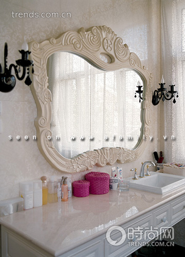 Bàn trang điểm có luôn bồn rửa mặt ngay bên cạnh rất tiện lợi.