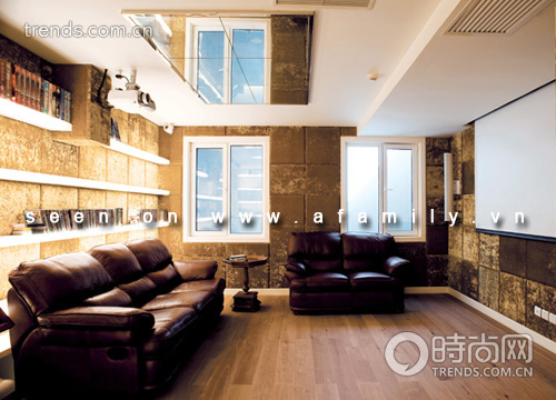 Phòng giải trí hơi khác biệt một chút khi được thiết kế với gam màu trầm chủ đạo, đem lại cảm giác thư giãn, thoải mái. Tại đây cô có thể xem phim hay hát karaokie thỏa sức.