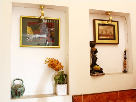 Kiến trúc sư tận dụng những hộc tường để bày đồ trang trí. Tranh ảnh và đồ nội thất được trưng bày trong nhà cũng mang đậm phong cách cổ điển.