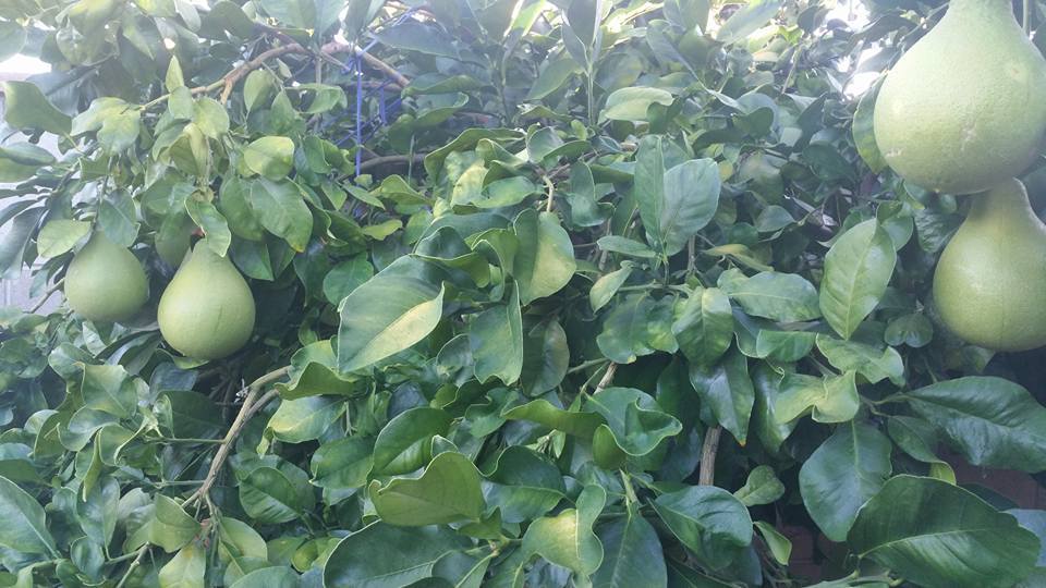 Xung quanh nhà là các loại cây ăn quả như roi, bưởi…