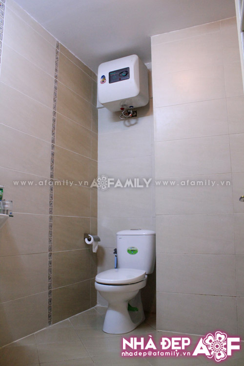 Bên cạnh đó, phòng tắm cũng là một trong số những không gian trong nhà khiến chúng tôi hài lòng. Điểm nhấn cho cả căn phòng trắng sáng này là loại gạch có hoa văn lá cây khá độc đáo, tạo nên vẻ đẹp đơn giản nhưng rất tinh tế.
