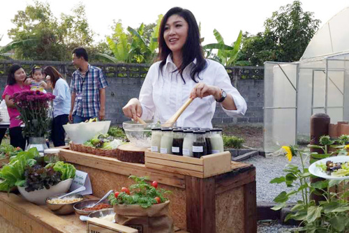 Trên trang cá nhân của bà Yingluck Shinawatra, có rất nhiều bức ảnh chụp bà làm vườn hay tự tay thu hoạch vườn rau của mình. Thậm chí bà cũng đã từng mời các nhà báo tới thăm nhà ở Bangkok để khoe khu vườn rau xanh của mình. Thời tiết của Bangkok khá nắng nóng nên để cây phát triển thuận lợi, bà Yingluck đã cho làm nhà lưới bao phủ. Các loại rau ngoài trồng bằng đất còn áp dụng thêm phương pháp thủy canh.