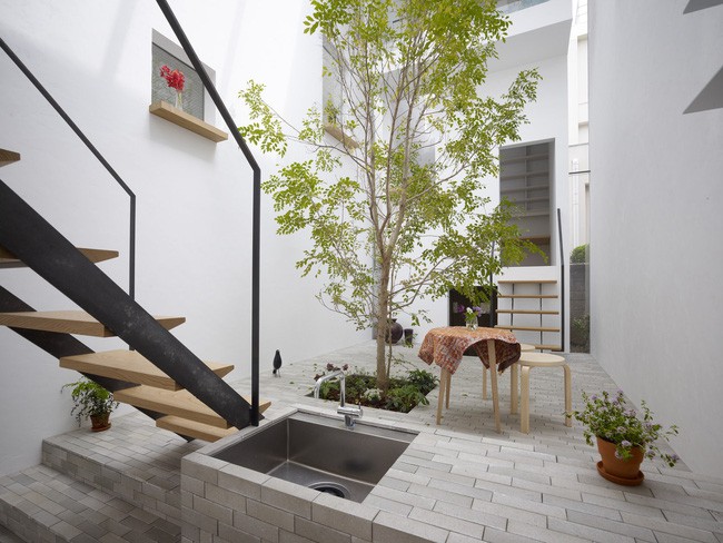 Với 6m² diện tích được sử dụng để làm giếng trời và trồng cây, ngôi nhà ống này đã thoát cảnh bí bách, thiếu sáng một cách ngoạn mục.