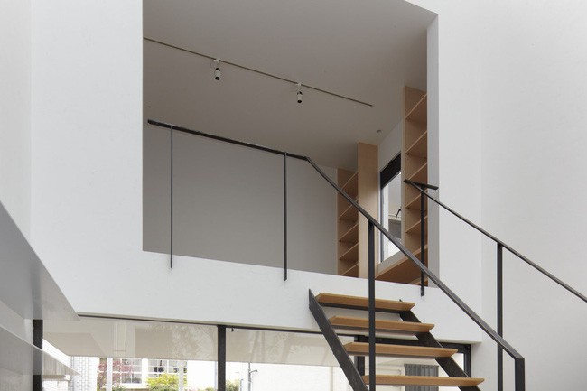 Các không gian sinh hoạt trong nhà đều thiết kế rất nhẹ nhàng với nội thất sáng màu và nhiều thủ thuật nội thất thông minh như các hệ kệ ốp tường lớn. Ngay cả màu sắc nội thất cũng được lựa chọn kĩ với màu trắng và vàng nhạt, nhờ đó, không gian nhà nhỏ trông gọn gàng và nhẹ nhàng