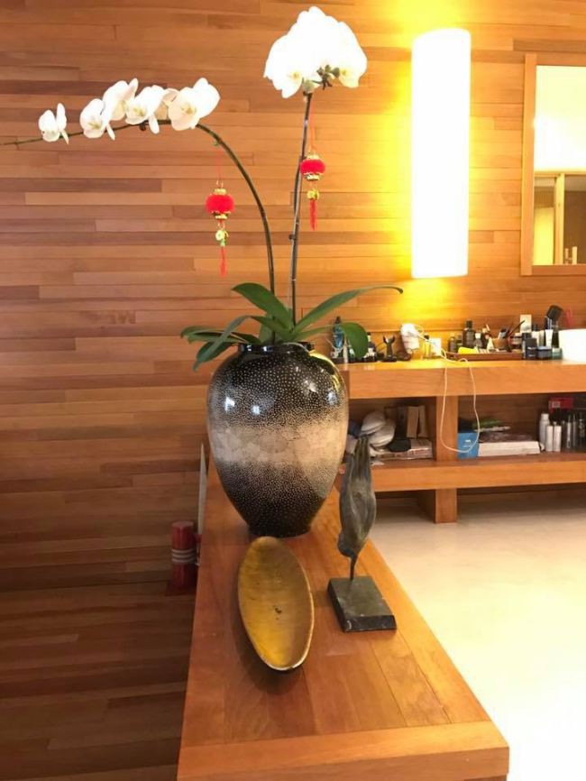 Có thể thấy Quang Dũng là một người yêu thiên nhiên khi bố trí bình hoa ở khắp nơi.