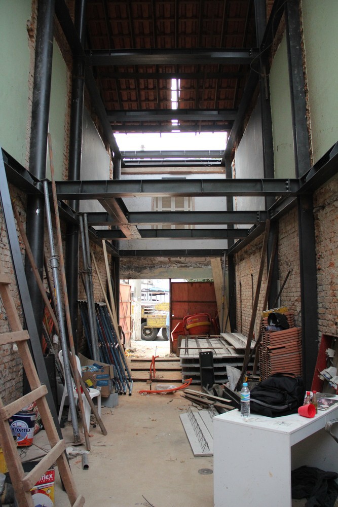 Không gian bên trong được giữ lại phần khung và sửa chữa, cải tạo lại toàn bộ nội thất và hoàn thiện thô.