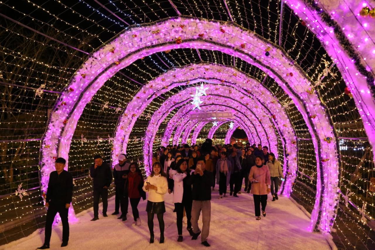 Dịp cuối năm, cả Nóc nhà Đông Dương sẽ bừng tỉnh trong lễ hội mùa đông. Từ Ga cáp treo đi, bạn sẽ như đang đi lạc giữa trời Âu khi đến với “Con đường mùa đông” dài nhất Việt Nam. Không khí Giáng sinh tràn ngập trên con đường với những chú tuần lộc nhung vàng, những quả châu cỡ đại rực rỡ sắc màu và các ông già Noel vui nhộn. Với chủ đề “Fansipan- con đường tuyết rơi”, lễ hội mùa đông năm nay hoành tráng và mới lạ hơn rất nhiều so với những năm trước. Bạn sẽ được chiêm ngưỡng cây thông Noel khổng lồ với đường kính kỷ lục 36m, được thắp sáng bởi hàng ngàn bóng đèn led và vô vàn món quà xinh xắn. Bạn cũng sẽ phải trầm trồ trước cây thông độc đáo được kết tạo từ 6.000 bắp ngô ở khu vực Ga đi, hay kinh ngạc khi thấy cây thông được tạo dựng từ 1,2 tấn cà rốt đỏ tươi tựa đốm lửa ấm áp trên đỉnh núi mờ sương.